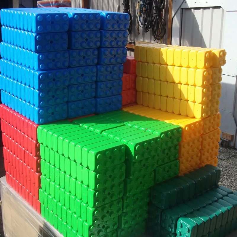 Il s'agit des mêmes blocs Lego ESDA que ceux que l'on trouve dans de nombreuses salles de jeux et parcs pour enfants, mais en taille réduite. Les enfants jouent avec ces blocs comme avec des Lego, mais ils permettent de construire des choses plus grandes. Des maisons aux bonshommes Lego, tout ce que les enfants peuvent faire dans leur imagination.